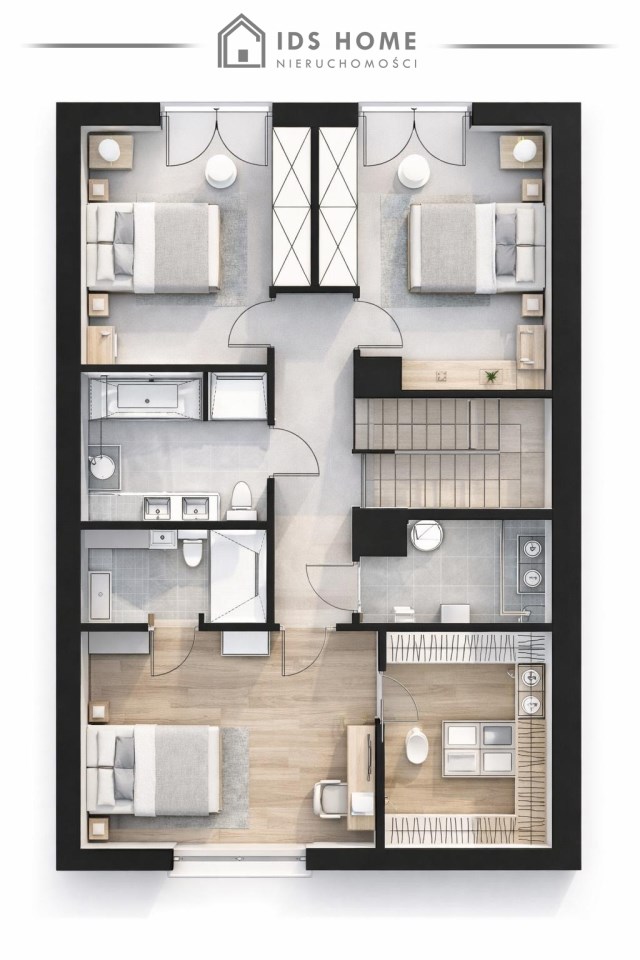 • 3 sypialnie: 12,77 m² | 13,05 m² | 16,16 m²